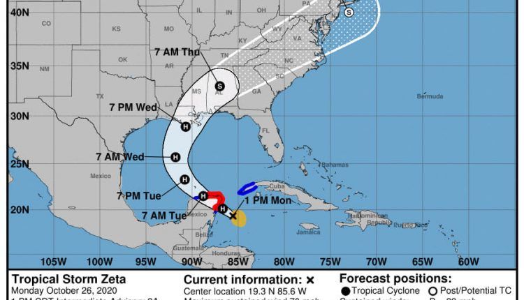 El Centro Nacional de Huracanes informó que la Tormenta Tropical Zeta se convierte en huracán categoría 1.