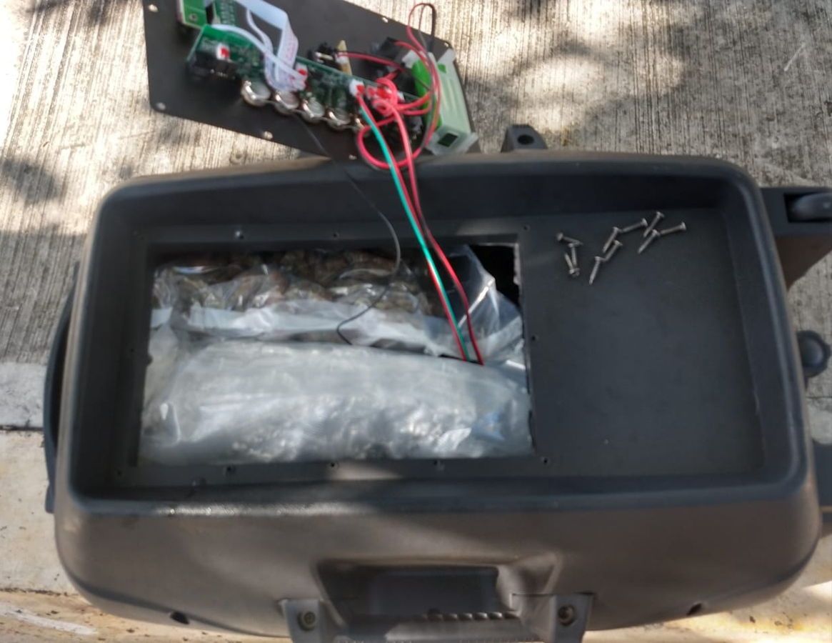 Cerca de un kilo de hierba verde con las características de la marihuana escondido en una bocina, fue asegurado por elementos de la Unidad Canina de la Secretaría de Seguridad Pública y Tránsito Municipal de Solidaridad, en la Terminal Marítima de Punta Venado, en el lugar también fue asegurado el vehículo que lo transportaba y el chofer de aproximadamente 28 años de edad originario del estado de Jalisco.
