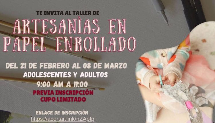 Invitan a participar en el taller “Artesanías en Papel Enrollado” que se llevará a cabo del 21 de febrero al 8 de marzo en el BiblioAvión Gervasio.
