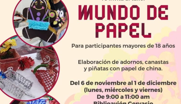 Las personas interesadas en participar en la cuarta edición del taller “Mundo de Papel”, podrán inscribirse en el BiblioAvión Gervasio, ubicado en la 130 avenida entre las calles 7 sur y Miguel Hidalgo, de lunes a viernes, de 08:00 a las 16:00 horas o en el enlace https://acortar.link/nZApIp.