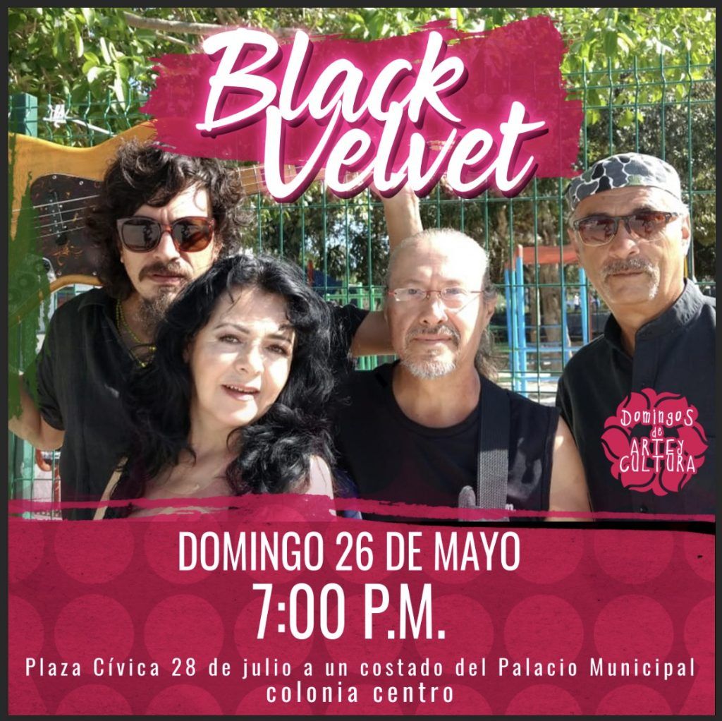 19:00 horas – Domingos de Arte y Cultura presentan: concierto con el grupo de rock “Black Velvet”. Plaza Cívica 28 de Julio. Evento gratuito.