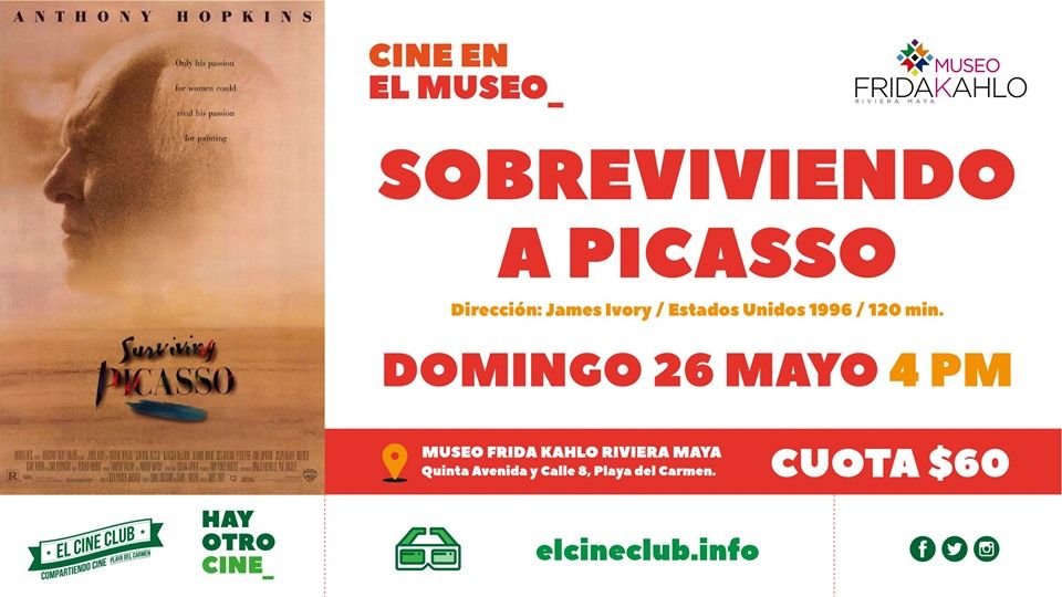 16:00 horas – El Cineclub presenta la película “Sobreviviendo a Picasso”, (USA, 1996).  Ciclo “Cine en el Museo”. Museo Frida Kahlo Riviera Maya. Cuota $60 pesos.