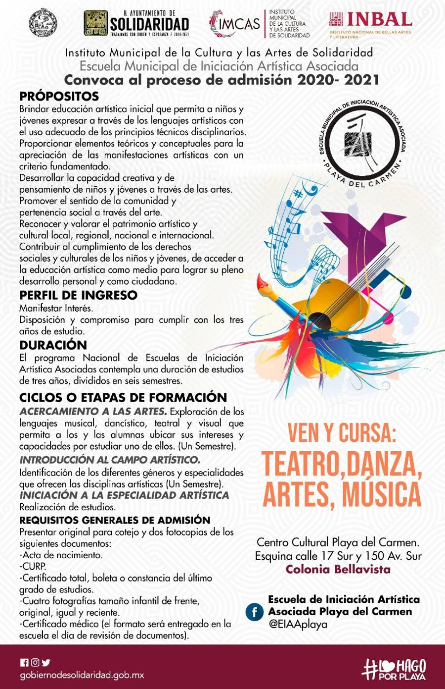 Para mayores informes acudir al Centro Cultural Playa del Carmen ubicado en la esquina de la calle 17 sur y 150 Av Sur. O llamar al teléfono 984 222 95 43