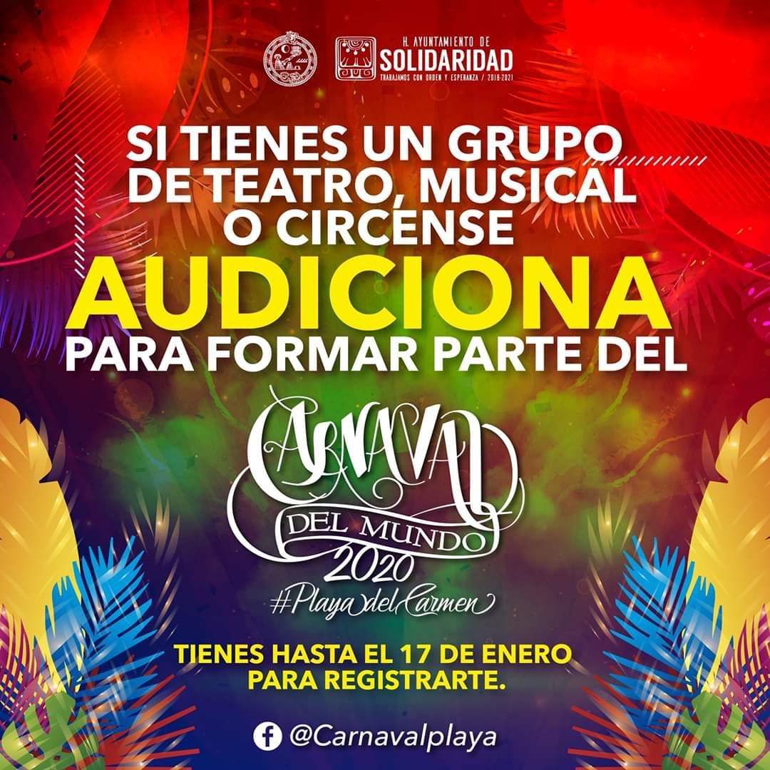 El Carnaval del Mundo 2020 Playa Del Carmen convoca a talentos artísticos de Quintana Roo y Solidaridad