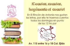 12:00 horas – “Cuentos Cuentos, Hagámosle al Cuento” cuenta cuentos con la compañía teatral “Alas Artes se ha Dicho”. El Rincón de Antonia, Av. 115, entre 16 y 18 Col. Ejido. Entrada libre.