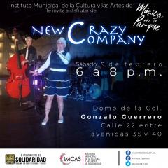 18:00 a 20:00 horas – Música en tu Parque presenta concierto con: New Crazy Company. Domo de Colonia Gonzalo Guerrero, calle 22 entre avenidas 35 y 30. Coordinado por IMCAS. Entrada libre.