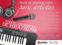 15:00 a 19:00 horas – Bazar de Segunda Mano para Artistas. Compra y venta de artículos usados, instrumentos musicales, equipos de audio, accesorios para danza y teatro, vestuario, material para artistas plásticos, intercambio de música y libros, etc. Coordinado por IMCAS. Centro Cultural Playa del Carmen, Av. CTM entre 115 y 125 avenidas, a contra esquina de Plaza las Américas. Entrada libre.
