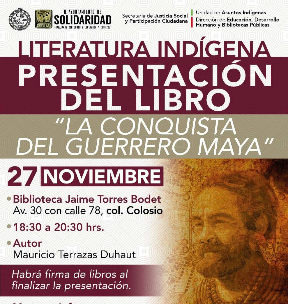 La biblioteca Jaime Torres Bodet en coordinación con la Unidad de Asuntos Indígenas les hace una cordial invitación a la presentación del libro: La Conquista del Guerrero Maya.
