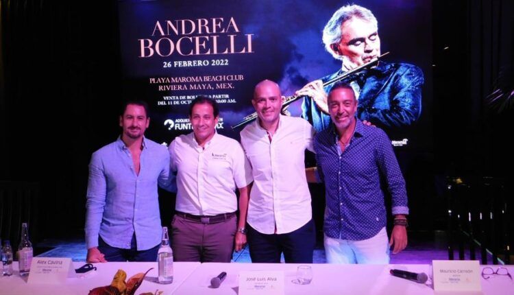 Global Pear Live Events y Music Vibe están ansiosos de compartir que Andrea Bocelli se presentará en nuestro país el sábado 26 de Febrero de 2022. Esta velada especial se llevará a cabo en Playa Maroma Beach Club, Riviera Maya, México. La venta de boletos saldrá a la venta a partir del 11 de Octubre, pero con una preventa especial este 7, 8, 9 y 10 de Octubre.