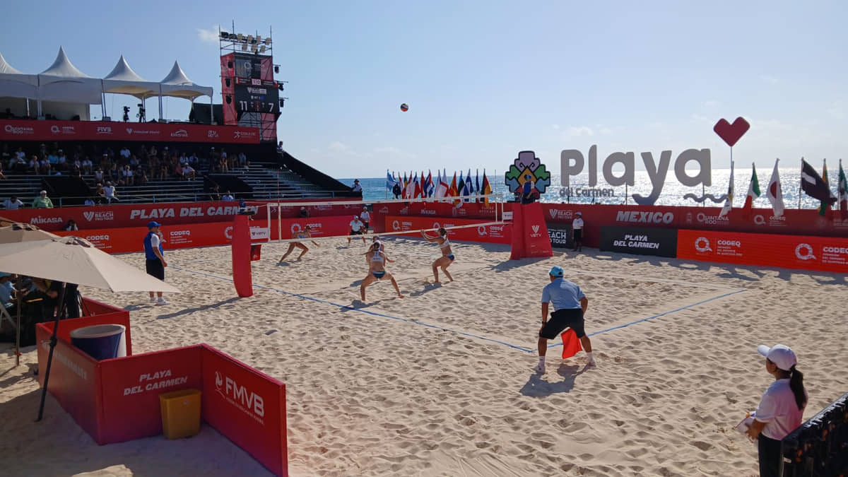 Playa del Carmen.- Con una afluencia estimada de al menos mil personas por día, arrancó la mañana de este miércoles el Tour Mundial de Voleibol Playa, en un espacio construido para este evento junto a la plaza Fundadores, en el centro de la ciudad.