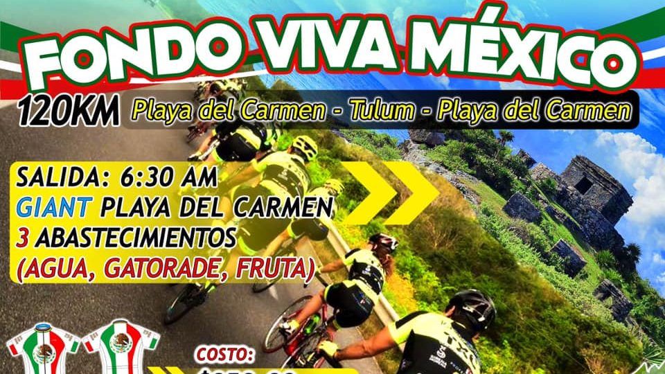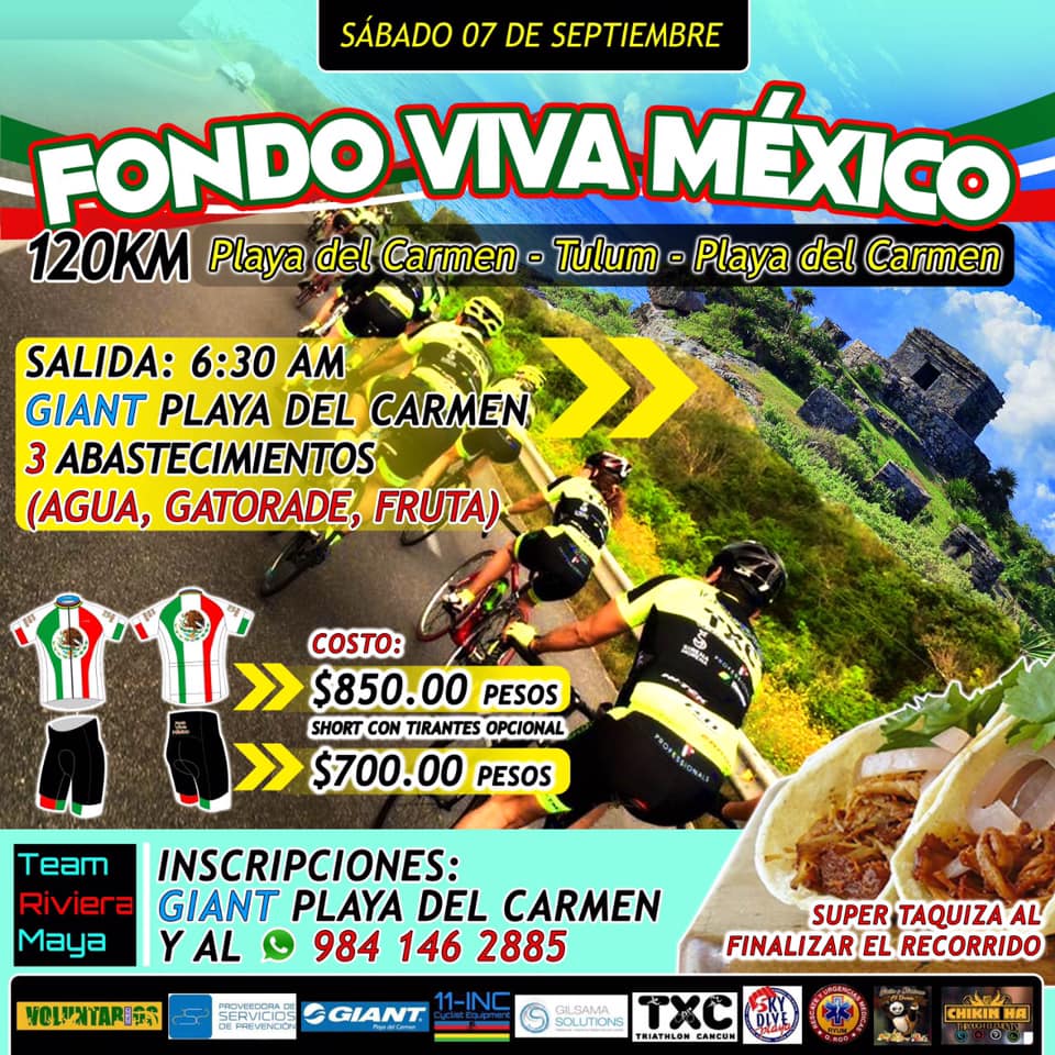 Team Riviera Maya invita a que te inscribas a la rodada ciclista de 120 km , Playa del Carmen / Tulum / Playa del Carmenque se llevará a cabo el sábado 7 de septiembre. La salida será a las 6:30 am. Habrá jersey conmemorativo, tres abastecimientos, mega taquiza al finalizar el recorrido, y música mexicana en vivo.