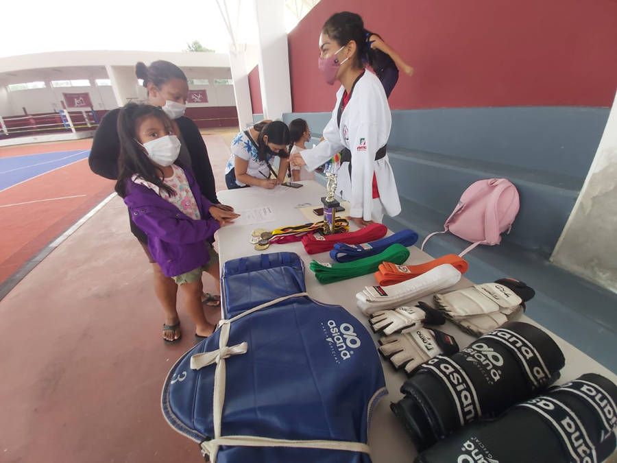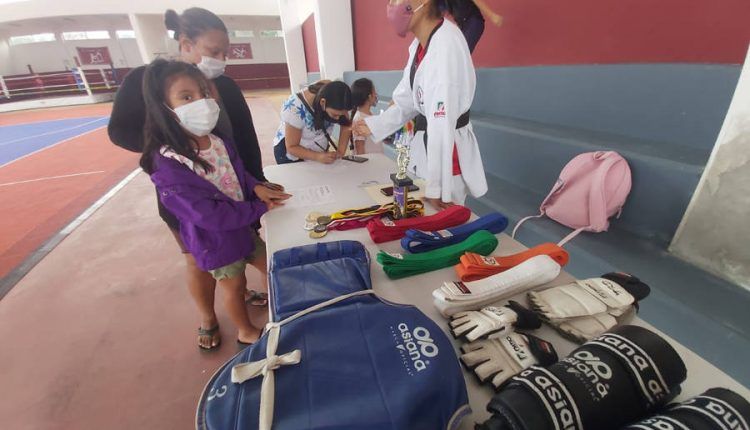 En el marco de la Feria del Deporte 2021 celebrado en la Unidad Deportiva de Puerto Aventuras, madres de familia participaron en la inscripción de sus hijos de 6 a 17 años de edad en las Escuelas Deportivas Municipales gratuitas, operadas por el Instituto del Deporte Municipal.