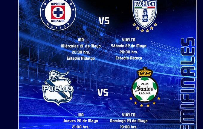 Para el primer juego, el miércoles 19 de mayo a las 20:30 horas, el Pachuca recibirá al Cruz Azul en el estadio Hidalgo y la Vuelta se jugará en el Estadio Azteca el próximo sábado 22 de mayo a las 20:00 horas.