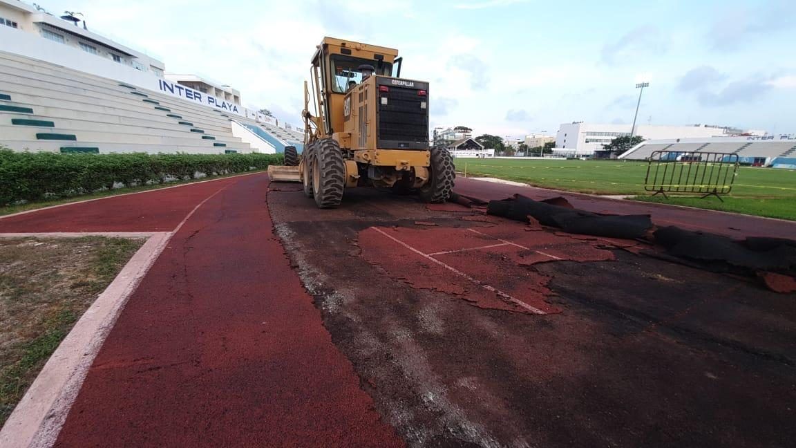 A petición de la ciudadanía, el Ayuntamiento de Solidaridad inició los trabajos de reconstrucción total de la pista de tartán para atletismo de la Unidad Deportiva Mario Villanueva.