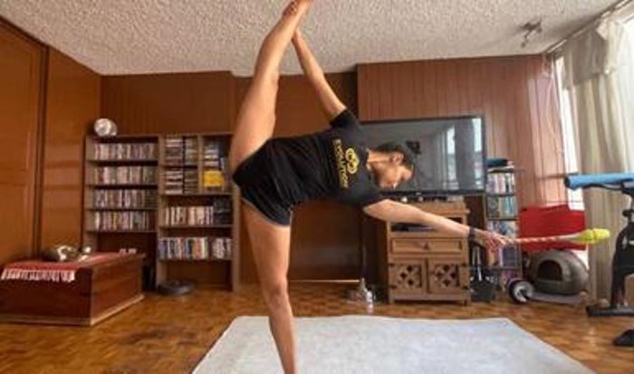 Motivada por lograr la plaza olímpica, la gimnasta rítmica Rut Castillo Galindo continúa con su proceso de preparación en casa, ante la emergencia sanitaria por COVID-19.
