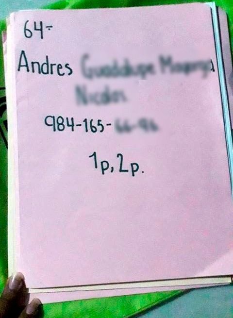 En esta ocasión mostraremos el ejemplo de una carpeta en la cual los presuntos delincuentes electorales llevaban el registro de cada una de las personas que los “líderes” habían convencido para recibir dinero a cambio de su voto, como se puede observar en este ejemplo de una de las cientas de carpetas encontradas, el líder número 64 de nombre Andrés “N”, se encargó de reclutar a por lo menos 10 personas de las cuales se llevó un registro detallado que incluyó dirección, teléfono y credencial de elector.