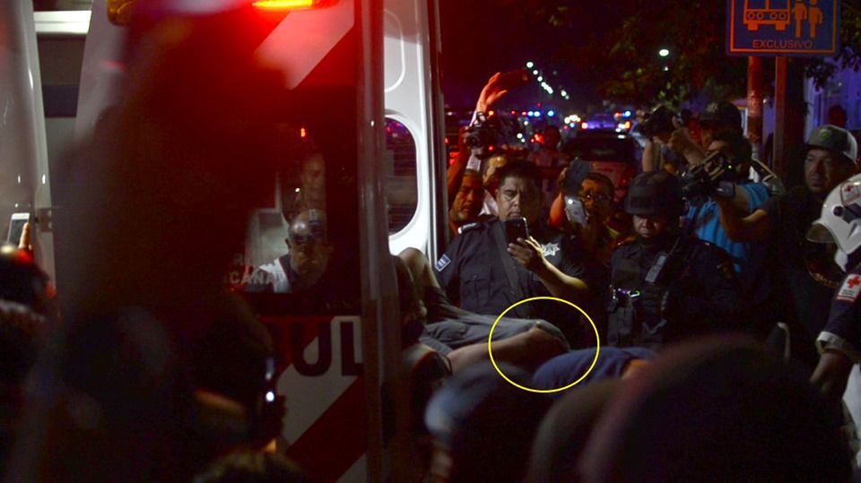 Una persona dentro del local solicitó ayuda médica y cuando salió en camilla llevaba en la panza lo que parecía un fajo de billetes, situación que enfureció a los denunciantes.