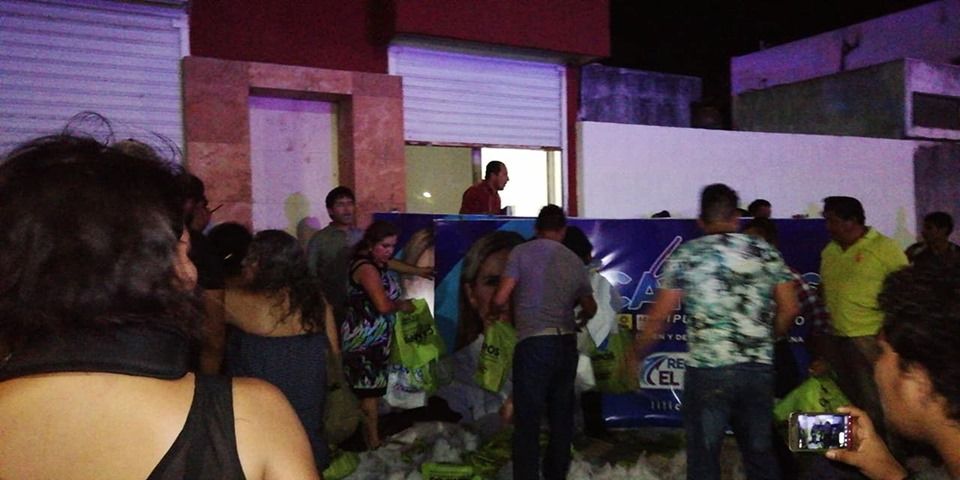 El lugar se encontraba custodiado por funcionarios del PAN quienes al notar que eran grabados, bajaron la cortina metálica dejando encerradas a las personas que supuestamente estaban cobrando su apoyo.