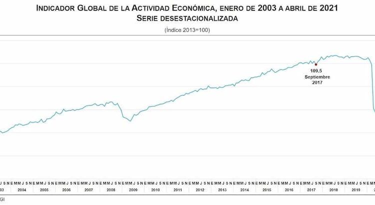 “…El IGAE tocó un máximo en el verano de 2018 para tomar una leve tendencia descendente y colapsarse con la pandemia. En junio 2020 inició una recuperación parcial que para abril 2021 todavía no alcanza el nivel de febrero 2020…”, indicó en Twitter el presidente del INEGI, Julio A. Santaella.