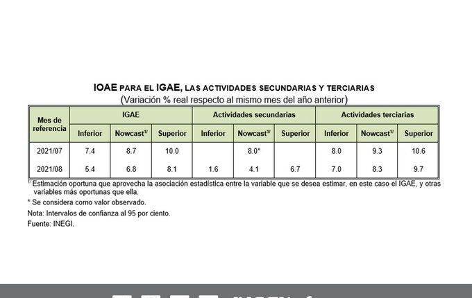En su indicador oportuno de la actividad económica, se prevé que durante el octavo mes del año el sector industrial se vio afectado en su dinamismo por la tercera ola de COVID, disminuyendo 0.5%; mientras que las actividades del sector servicios y comercio, se estancaron en cero crecimiento.