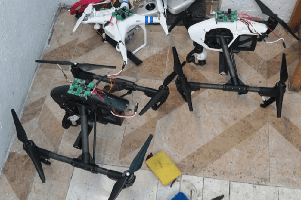 A detalle, se aseguró sustancia explosiva conocida como C4, dictaminada así por peritos de la Coordinación General de Servicios Periciales de la Fiscalía; pólvora; esferas conocidas como crisantemos; tres drones y dos controles para vehículo volador no tripulado (dron).