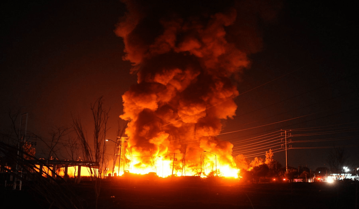 De acuerdo con los reportes, el incendio se derivó de una explosión en la zona, mismo que se propagó rápidamente.