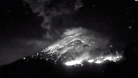 Otra impresionante explosión del Popocatépetl tuvo lugar a las 19:48 horas, con presencia de material incandescente.
