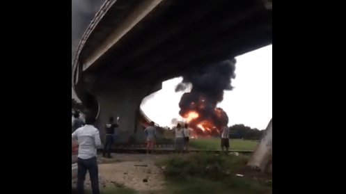 De acuerdo con medios de comunicación locales, el vehículo pesado chocó con varios automóviles antes de caer y estallar en llamas.