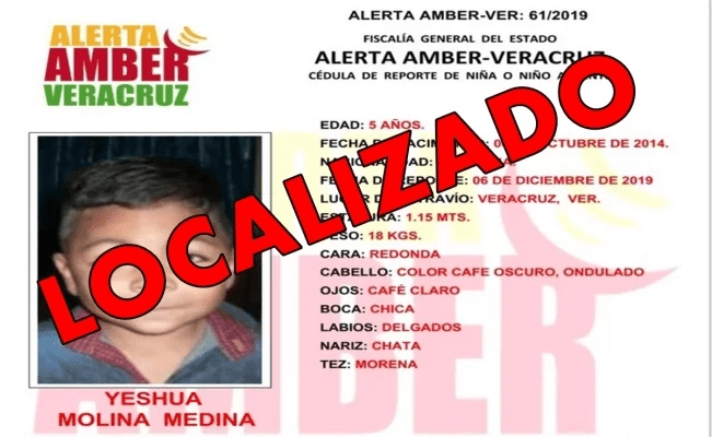 La Secretaría de Seguridad Pública anunció a través de un comunicado que el menor Yeshua Molina Medina de 5 años de edad fue recuperado sano y salvo, luego de un operativo que se realizó en el puerto de Veracruz, donde se ubicó a los secuestradores.