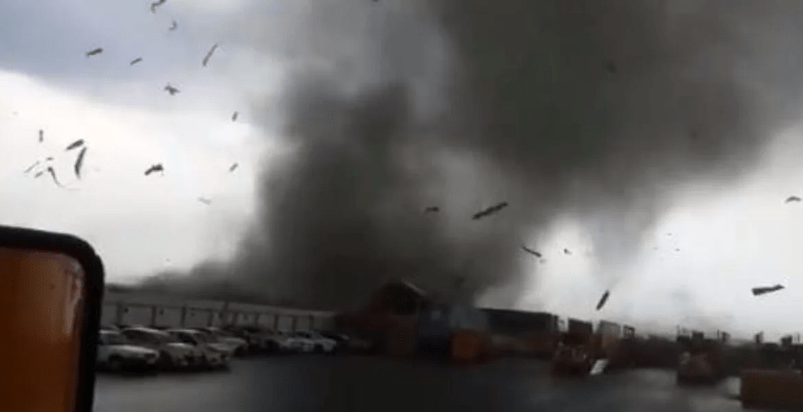 De acuerdo con autoridades estatales, el torbellino fue consecuencia de fuertes lluvias acompañadas de granizo y actividad eléctrica.
