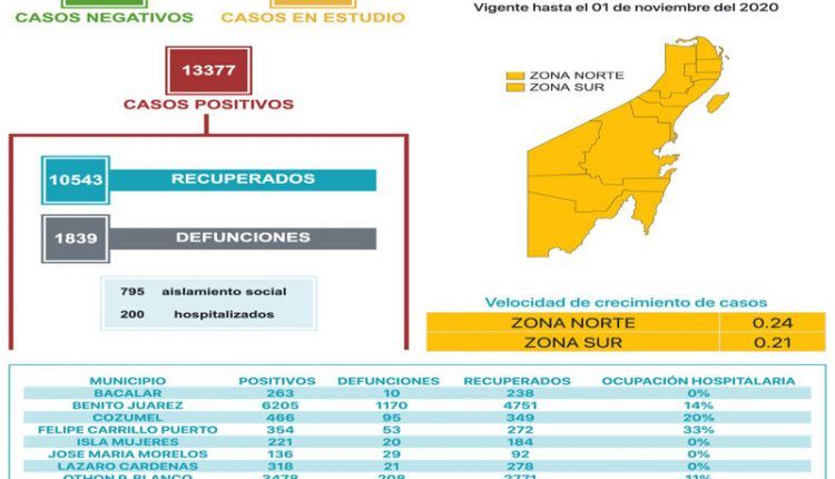 13 mil 377 casos positivos a Covid-19 en Quintana Roo