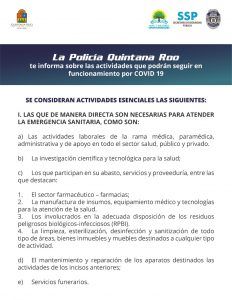 La Secretaría de Seguridad Pública dio a conocer las actividades que NO se suspenden por considerarse esenciales.
