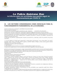 III. LOS SECTORES CONSIDERADOS COMO ESENCIALES PARA EL FUNCIONAMIENTO FUNDAMENTAL DE LA ECONOMÍA: