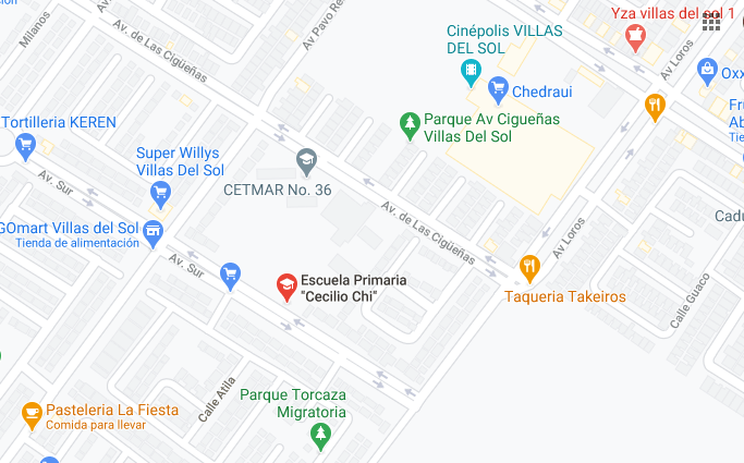 -Escuela Cecilio Chí, en la avenida Sur entre avenidas Loros y Pavorreal, en el fraccionamiento Villas del Sol.
