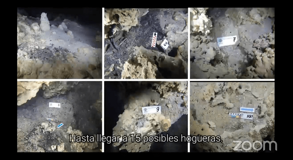 En ese sitio único, a 30 metros bajo el agua y unos 100 metros de la entrada, en el salón o galería conocido como Cámara de los Ancestros, arqueólogos de la Subdirección de Arqueología Subacuática del Instituto Nacional de Antropología e Historia (INAH) hallaron 15 acumulaciones de carbón, posibles hogueras que fueron cuidadosamente documentadas, medidas y muestreadas, junto con los expertos de la Universidad Nacional, informaron Terrazas Mata y Elizabeth Solleiro Rebolledo, del IGL.