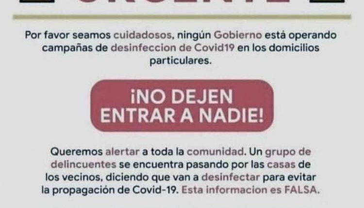 Otra parte de la estrategia de terror es la del personal que quiere entrar a las casas para desinfectarlas y evitar la propagación del Covid 19, que también resulta información falsa.