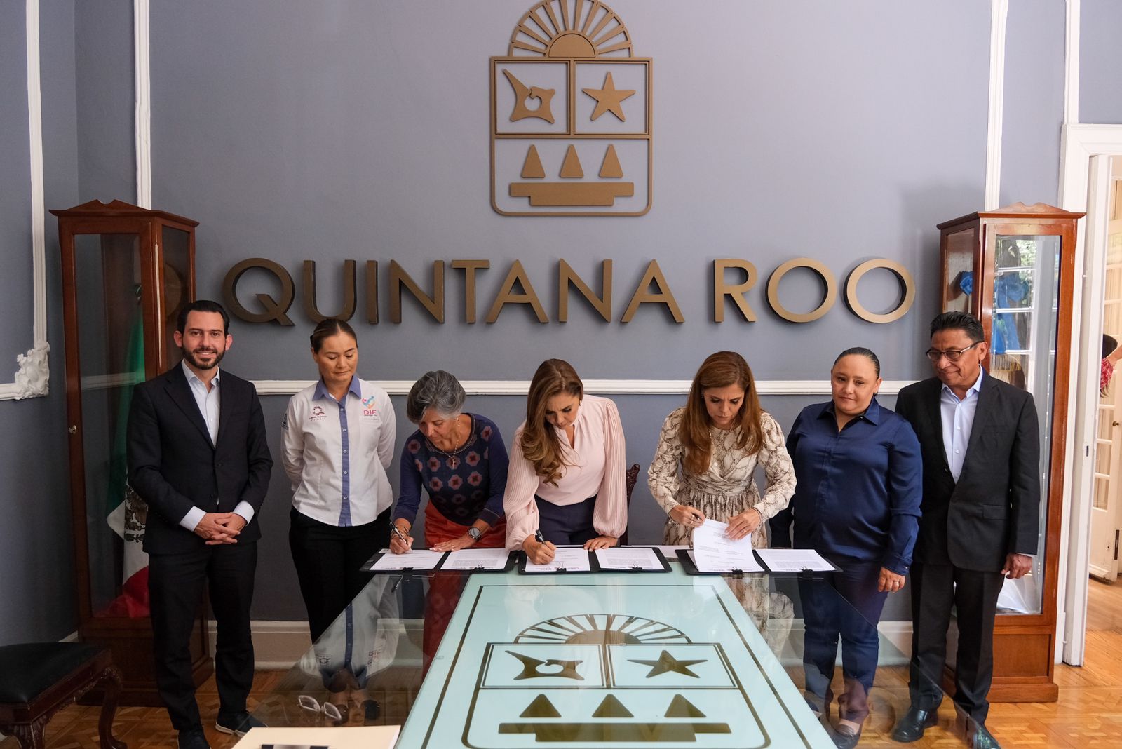 En la firma participaron la Presidenta Honoraria del DIF Quintana Roo, Verónica Lezama Espinosa; la directora general del DIF, Abril Sabido Alcérreca; la secretaria de Gobierno, Cristina Torres Gómez; el secretario de Educación, Carlos Gorocica y el secretario de Turismo, Bernardo Cueto.