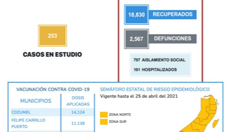La secretaria de Salud del estado de Quintana Roo Alejandra Aguirre, informó que hay hasta el momento 22, 355 casos positivos, 26,063 casos negativos, y 253 en estudio