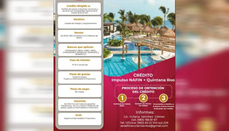 Para obtener más información sobre los créditos disponibles y los requisitos para acceder a ellos, los interesados pueden ponerse en contacto mediante sede.financiaminetos@gmail.com o a través de los números (983) 833 4354 ext. 242 o (998) 892 0925 ext. 201