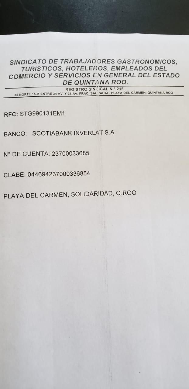 Además, advirtieron que entre empresa y alcaldía se utiliza la cuenta bancaria del Sindicato de Trabajadores Gastronómicos, con sede en Paya del Carmen, No. 23700033685 de Scotiabank, para triangular recursos.