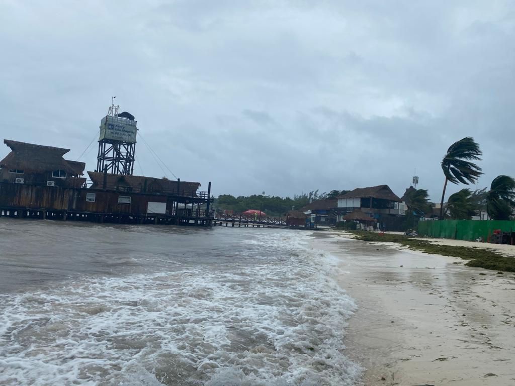 El fenómeno ya está encima de Quintana Roo y ha provocado estragos mejores en el bulevar Kukulkán, por la fuerza de los vientos.