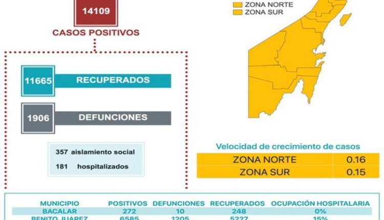 Llega Quintana Roo a 14 mil 109 casos positivos.