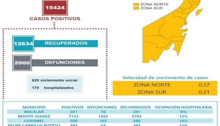 Llega Quintana Roo a 15 mil 424 casos positivos.