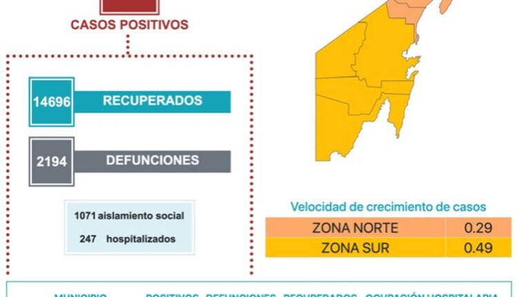 Bacalar acumula 311 casos positivos, Benito Juárez 8682, Cozumel 592, Felipe Carrillo Puerto 425, Isla Mujeres 258, José María Morelos 164, Lázaro Cárdenas 379, Othón P. Blanco 4689, Puerto Morelos 41, Solidaridad 2307,y Tulum 360.