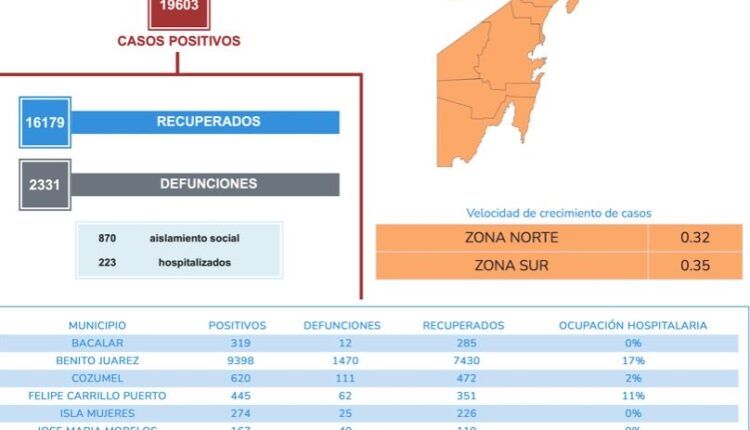 Llega Quintana Roo a 19 mil 603 casos positivos.