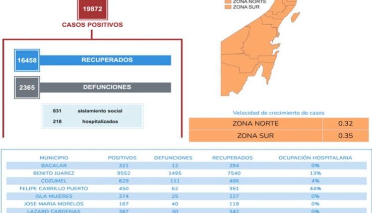 Llega Quintana Roo a 19 mil 872 casos positivos.