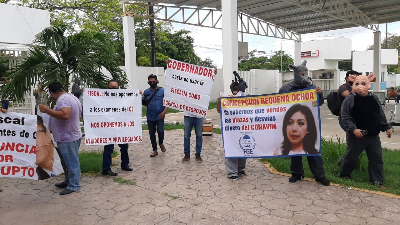 Integrantes de la asociación Somos tus Ojos por la transparencia Quintana Roo realizaron una manifestación para exigir la destitución del fiscal Oscar Montes de Oca ante actos de corrupción, nepotismo y desempeño irregular de la función pública.