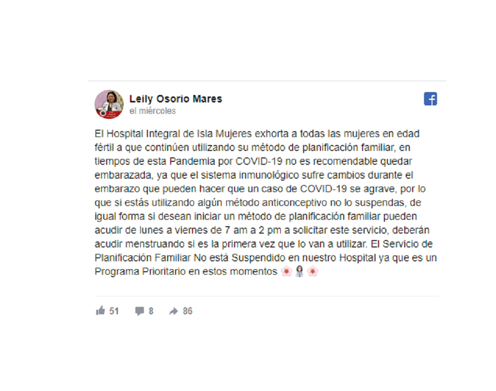 El Hospital Integral de Isla Mujeres exhorta a todas las mujeres en edad fértil a que continúen utilizando su método de…