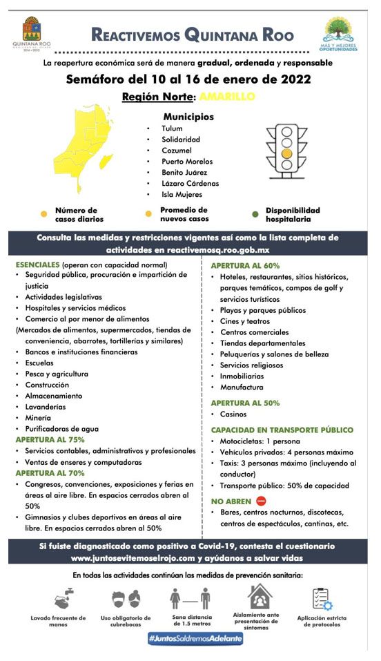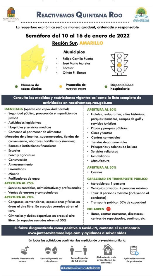 Regresa Quintana Roo a semáforo amarillo a partir del lunes 10 de enero.