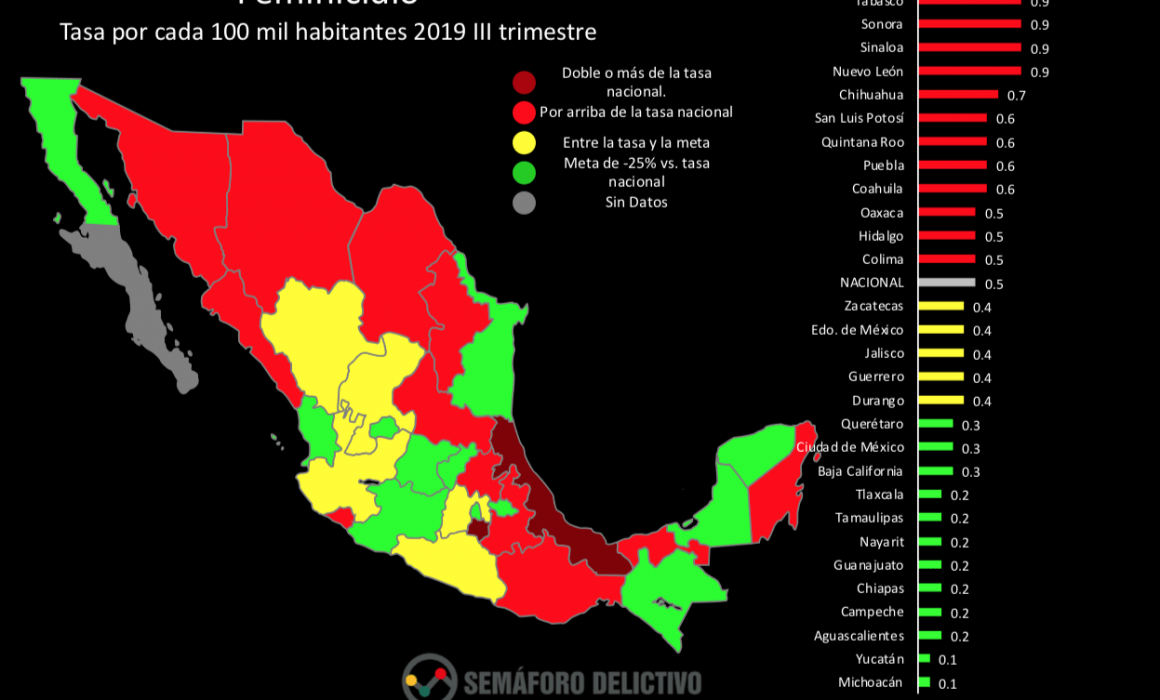 En feminicidios, la entidad ocupa un deshonroso noveno lugar.